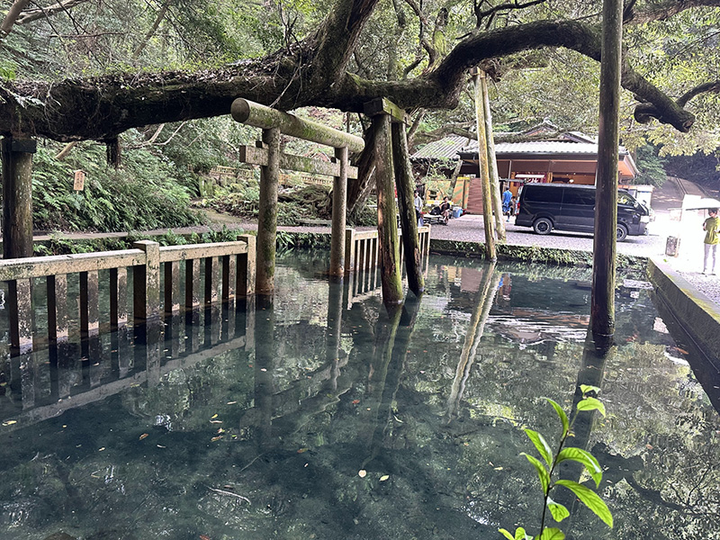 大きな鳥居の足元、左右に湧き出る「忍潮井(おしおい)」は、地下から自然に湧き出る清水で、古くから“願いが叶う霊水”として人々の信仰を集めてきました。透明度の高い水に映る景色は、まるで鏡のような神秘的な美しさ。写真映えスポットとしても人気です。