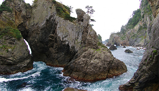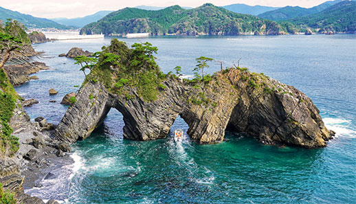 小本の漁師さんの漁船に乗り、小本湾を遊覧。日本で初めて「モシ竜」が発掘された岩手県岩泉町で、三陸特有のリアス式の海岸美を海から眺めることができます。